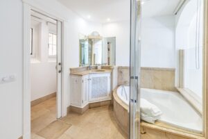 El piso de 95 m2 tiene un dormitorio con baño en suite con bañera y ducha. Los suelos son de mármol antiguo con calefacción por suelo radiante en todo el piso. Las cocinas están equipadas por Poggenpohl con electrodomésticos empotrados Küppersbusch. Tanto el salón como el dormitorio principal tienen acceso a la terraza de aprox. 33 metros cuadrados y al jardín privado.Características especiales son: Modernización en 2024 (incl. nueva ducha, interruptores de luz, nueva pintura fresca de la pared), aire acondicionado frío / calor, calefacción por suelo radiante (bomba de calor), lavadero, plaza de aparcamiento subterráneo, gimnasio, SPA, piscinas.
